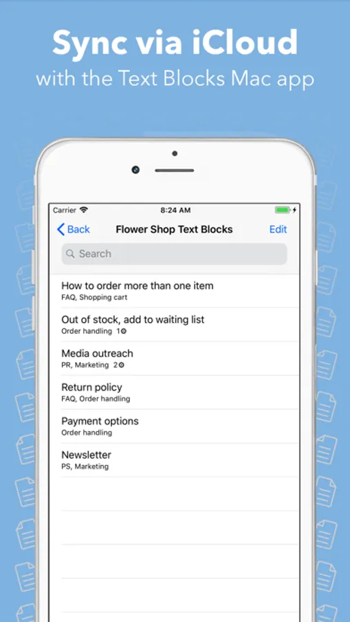 Text Blocks is also available for macOS. You can sync your text blocks between your devices via iCloud.