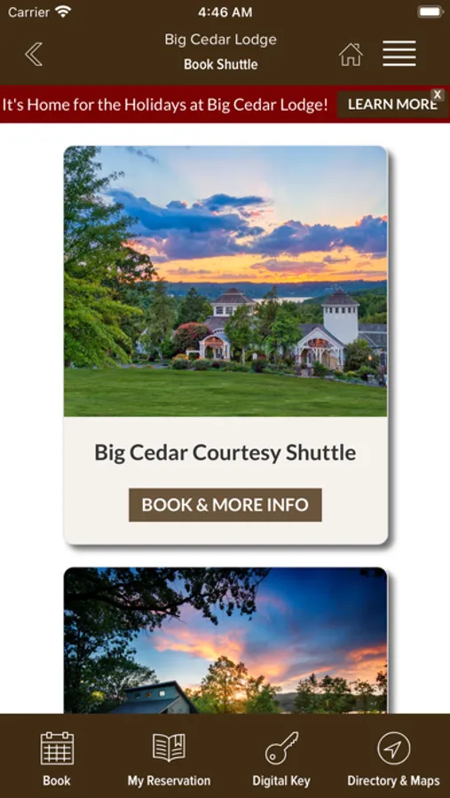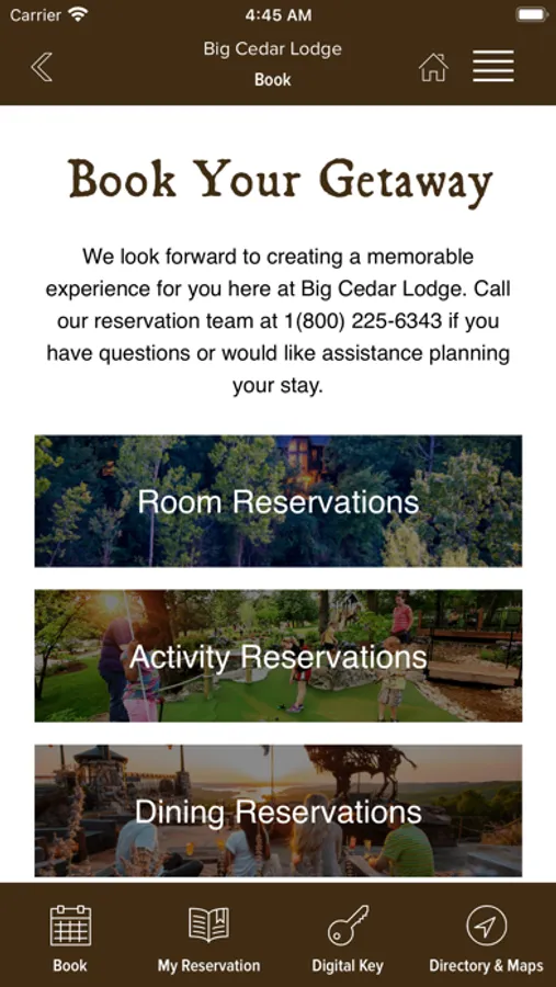 The Big Cedar Lodge app contains information and hours for the various properties, restaurants, golf courses, and attractions which are part of the Big Cedar Lodge experience.