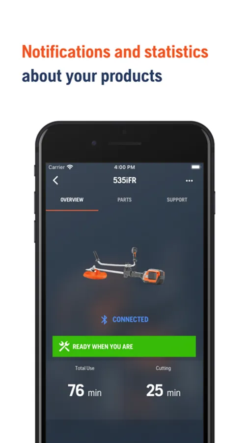 From live notifications and data to know when to refuel or recharge to digital guides and manuals to help you trouble shoot on the spot, the Connect App helps to unleash the full power and potential of your Husqvarna products. Demo the app to discover the full potential, or sync your connected product by scanning the QR code, connecting via Bluetooth or entering the product manually.