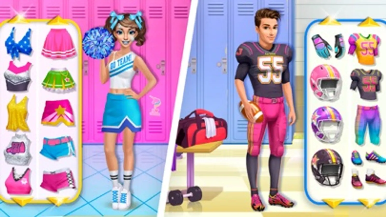 Hannah became a cheerleader and Jack joined the football team! What a perfect couple, right? Dress up Hannah in cute cheerleader clothes. Create pom-poms with a custom design at the Craft Fair, color and decorate them the way you like. Design the best football uniform for Jack!