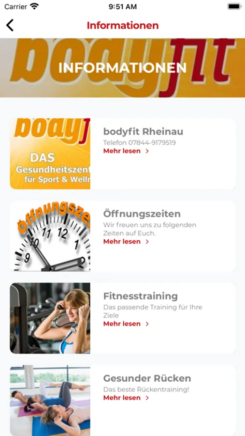 Durch die bodyfit App hast du deinen Fitnessclub immer dabei. Sie bietet dir jederzeit alle wichtigen Informationen rund um deinen Club bodyfit: News & Aktuelles, Aktionen, Angebote, Kursplan mit Kursbeschreibung und vieles mehr.