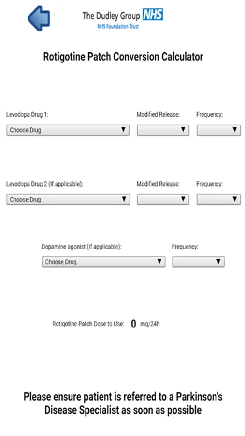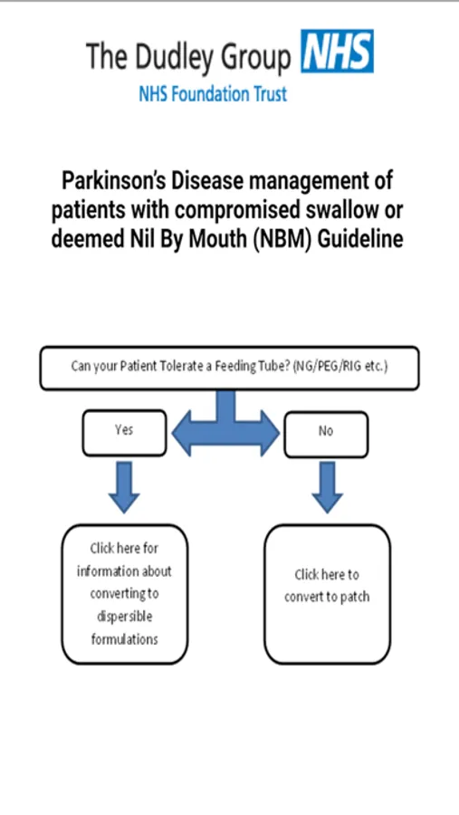 Parkinson’s disease management of patients with compromised swallow or deemed nil by mouth (NBM) oral to patch calculator and dispersion guidance.