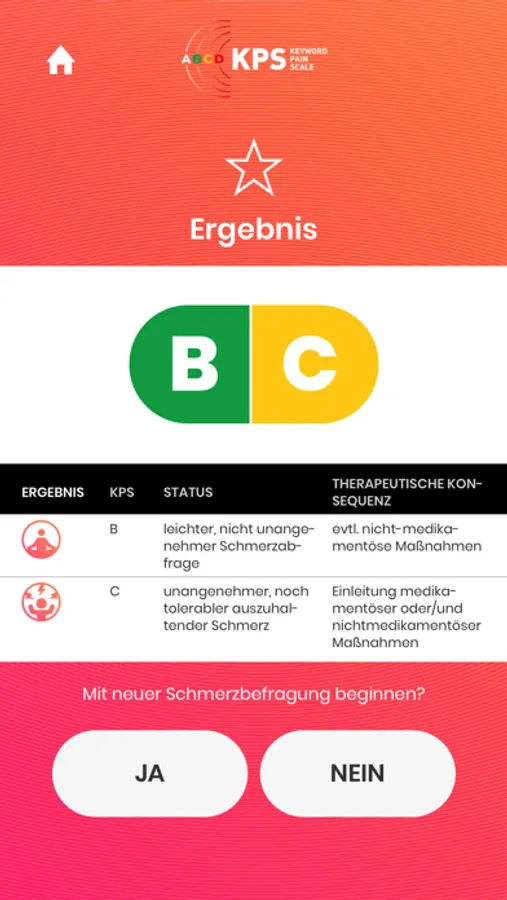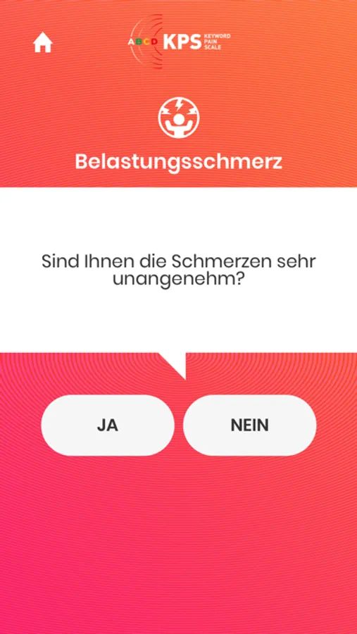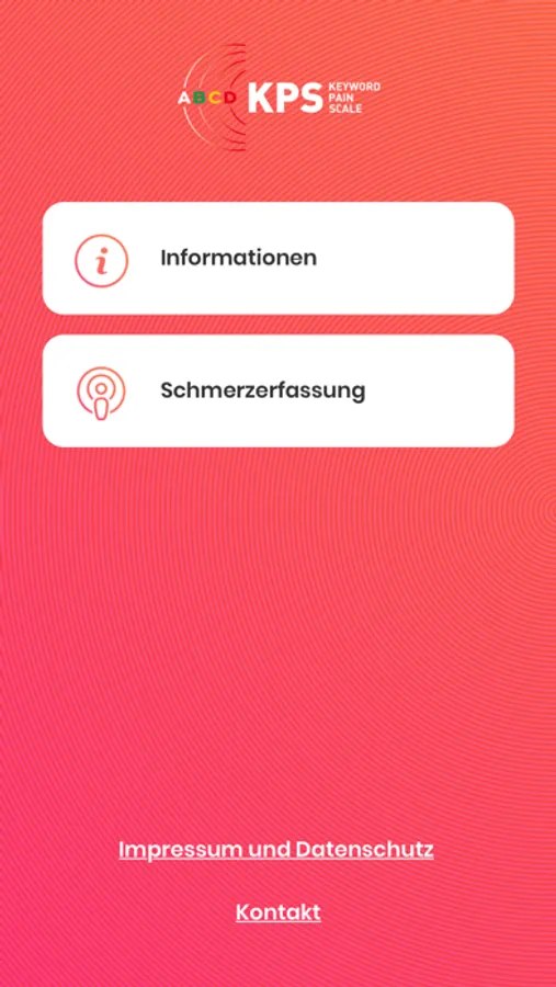 Die Grundvoraussetzung für eine adäquate Schmerztherapie ist eine zuverlässige Schmerzmessung. Die neue Schmerzskala Keywords Pain Scale App (KPS) wurde an der Klinikum Bayreuth GmbH entwickelt um bestehe Probleme mit etablierten Schmerzskalen zu verbessern. Nach einer verbalen Abfrage wird die Schmerzintensität in nur 4 sinnvolle Stufen eingeteilt: A, B, C und D eingeteilt.