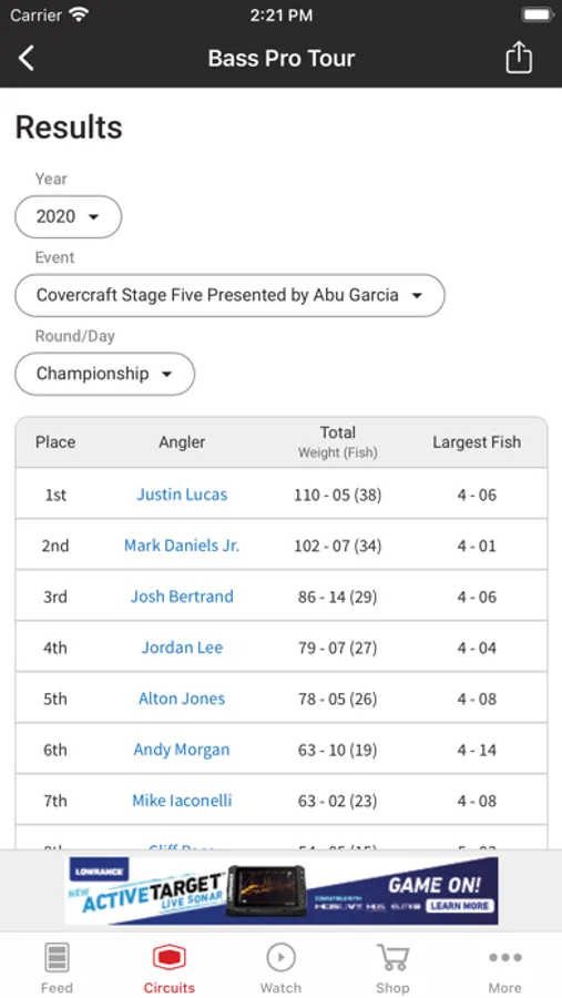 Bass Pro Tour • Cup Events • Tackle Warehouse Pro Circuit • Toyota Series • Phoenix Bass Fishing League • Abu Garcia College Fishing • High School Fishing
