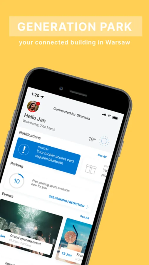 Generation Park app is a community application with integrated building services such as access and parking for the Generation Park project in Krakow, Poland.