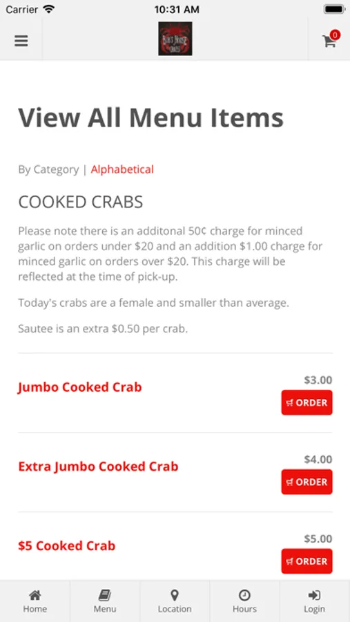 Online ordering for Bob's House of Crabs in Philadelphia, PA