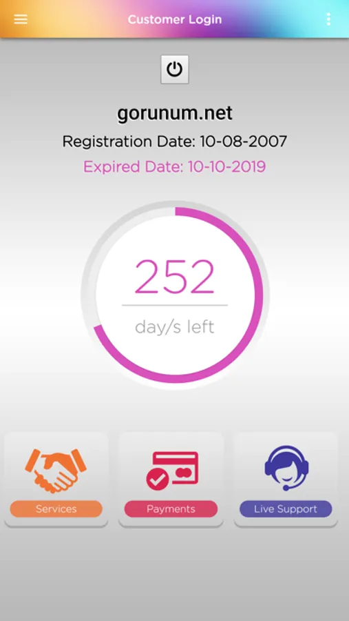 Our customers can log in and then check own domain & hosting information (creation and expiration dates), review the payments and own services what they bought from our company. And also live support services with this mobile application.