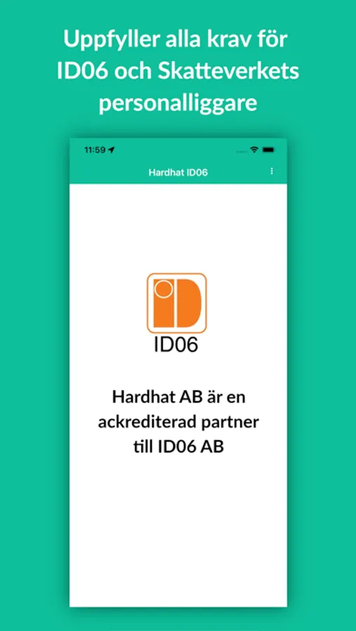 Hardhat AB är en ackrediterad partner till ID06 AB, och denna app uppfyller alla säkerhets- och funktionskrav från ID06 AB.
