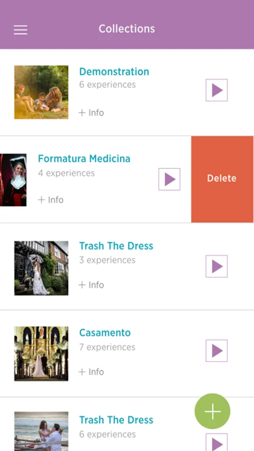 O profissional pode visualizar as experiências que criou para seus clientes.