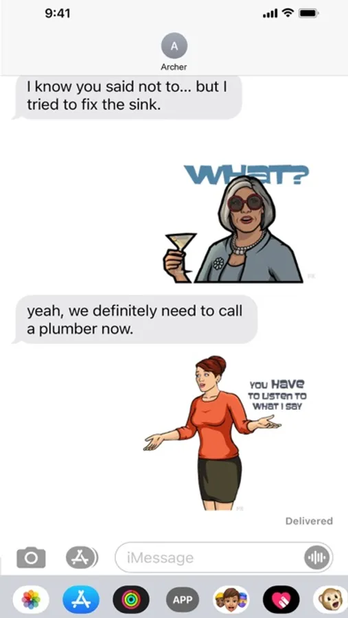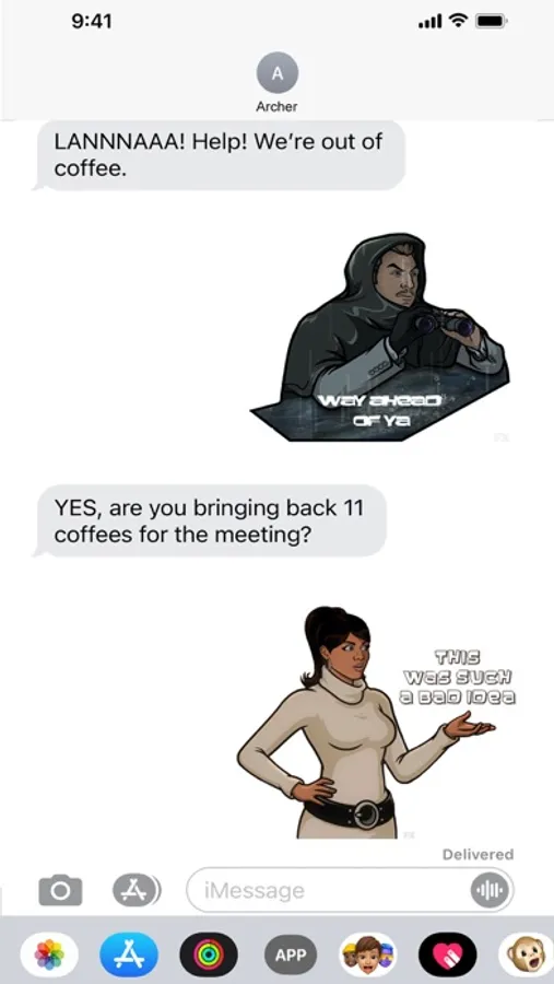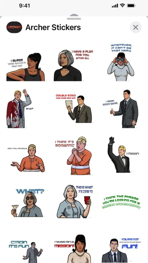 We can’t hear you… over the deafening sound of our AWESOME ARCHER STICKERS. Now you can bring your conversations into the DANGER ZONE with help from the World’s Greatest Spy and his friends. With Archer Stickers, choose from a collection of splooshtastic images inspired by classic quotes and moments from FX’s hit animated comedy series.