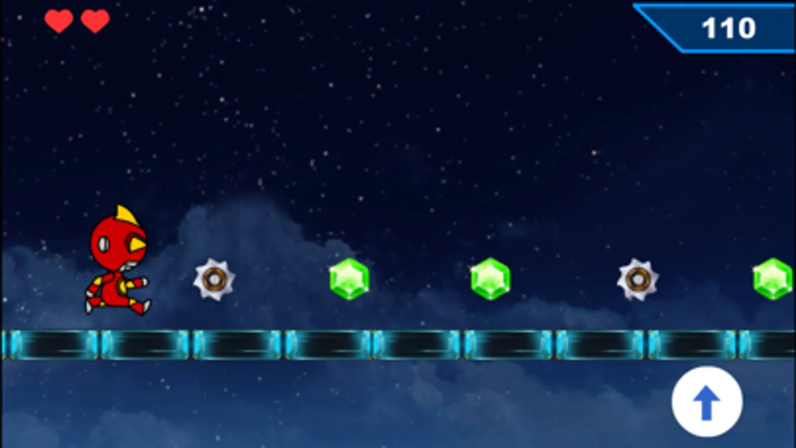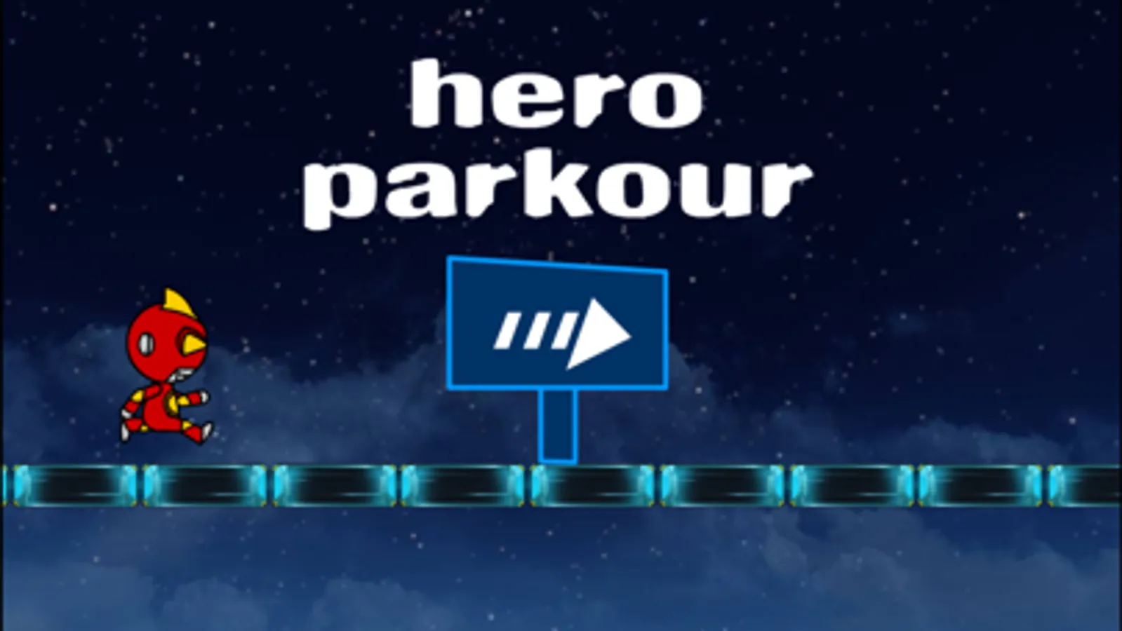Hero parkour game click on the up button, the hero will jump up to avoid gear, gear encounter 3 times will be the end of the game.