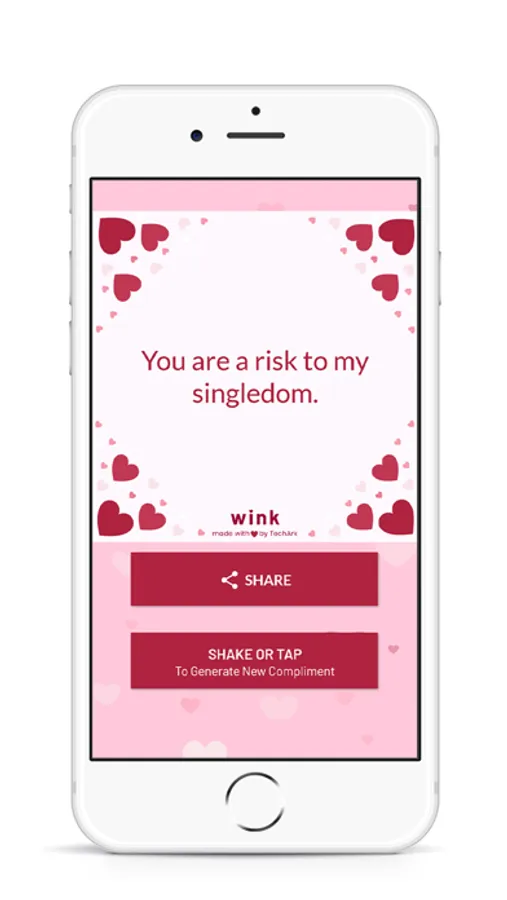 Wink is a compliment generator, but its sweet talk is far from random. Wink is populated with one-of-a-kind original compliments hand-crafted with love. Download Wink today for the cutest, most creative compliments around. Just in time for Valentine’s Day, but fun year-round, try Wink, the complimentary compliment generator, and spread the love.