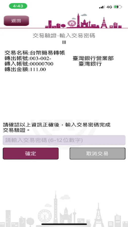 二、 線上推播:於e企合成網做交易覆核或放行,選擇安控機制為『行動Safe Go』,由客戶直接於本App上查看交易內容,並輸入自設的交易密碼完成交易認證。