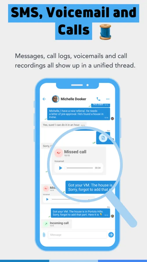 See a contacts' voicemails, texts, and calls in one view. No more tapping around to get a contact's info.