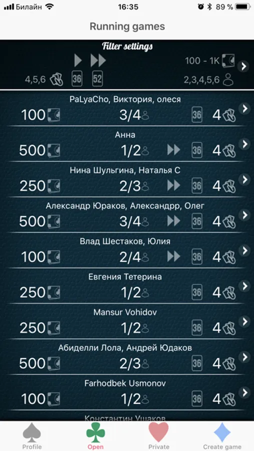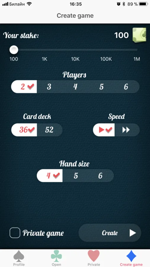 • Private games with password.