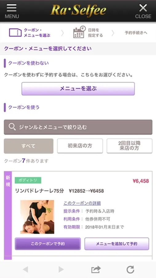 ご希望のメニューから日時を指定して送信するだけでご予約頂けます。