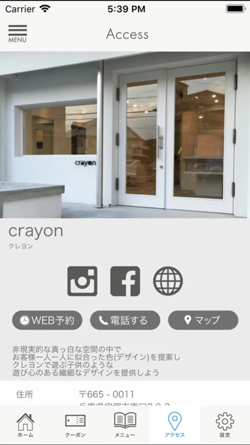 店舗のマップが表示され、地図アプリとも連携しているので、初めてのご来店の時も簡単に見つけることができます。