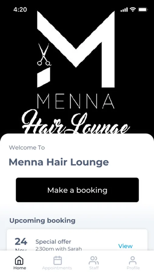 The Menna Hair Lounge app makes booking your appointments and managing your loyalty points even easier. You're just a few taps away from feeling good and looking great!