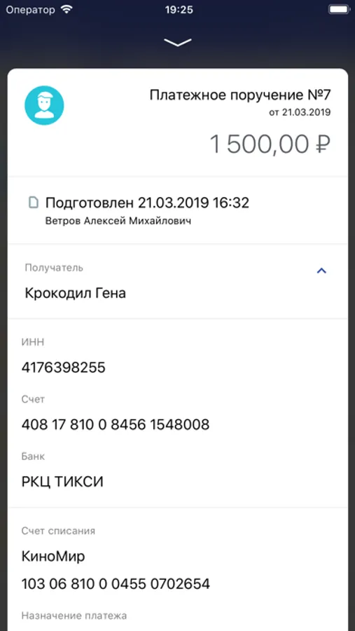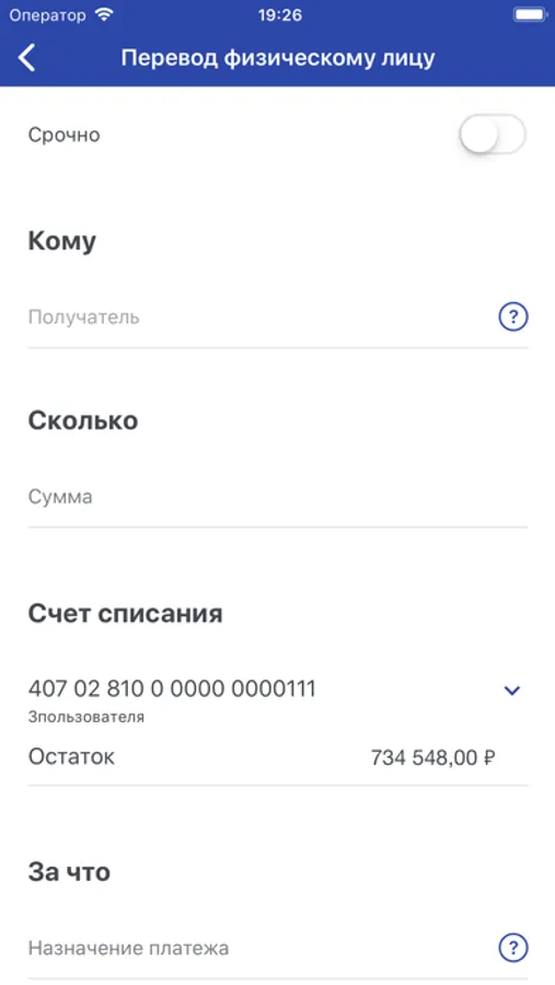 * Быстро формировать и отправлять платежные поручения и переводы между своими счетами