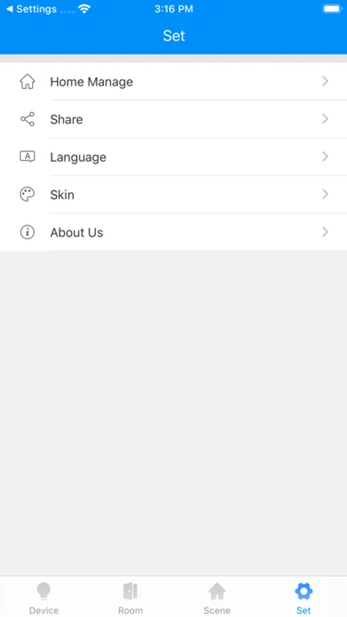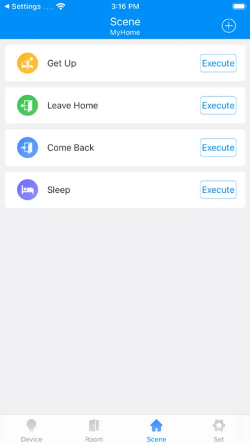 Devices, groups, scenes, settings.
