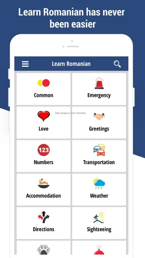 This app can be your free tutor - the best app Romanian for beginners, wherein you can learn the Romanian language. The app consists of hundreds of useful Romanian words and expressions with high-quality pronunciation audio. It serves the purpose of Romanian learning as well as Romanian translator. The basic Romanian phrases in the app are given in different categories like Greetings, Shopping, Weather, Airport, etc., with a step by step learning approach.
