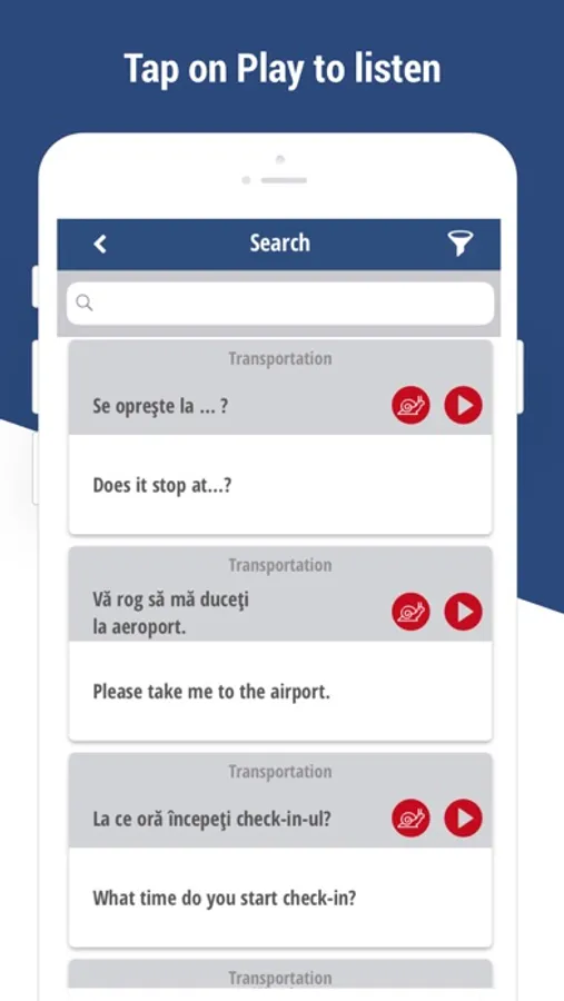This app not only enables you to learn to speak Romanian words, phrases and expressions but it is also a free Romanian translator as it contains English to Romanian translation. So, if you are lazy to learn Romanian fast, then you can use the English to Romanian translation given in any category for a particular situation. It is a free audiobook, phrasebook, and Romanian translator!