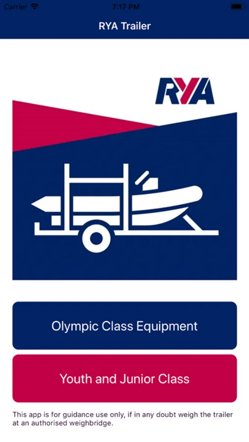 RYA Trailers allows RYA Staff, Coaches and Volunteers to check loading and towing weights for standard RYA equipment along with Youth, Junior and Olympic class boats. Designed to be used only as a guide to enable safe trailer loading and towing.