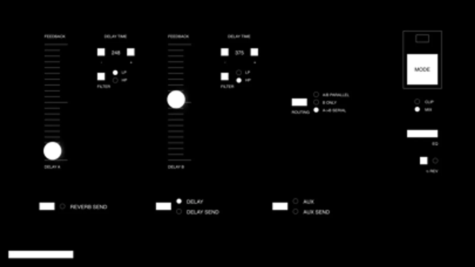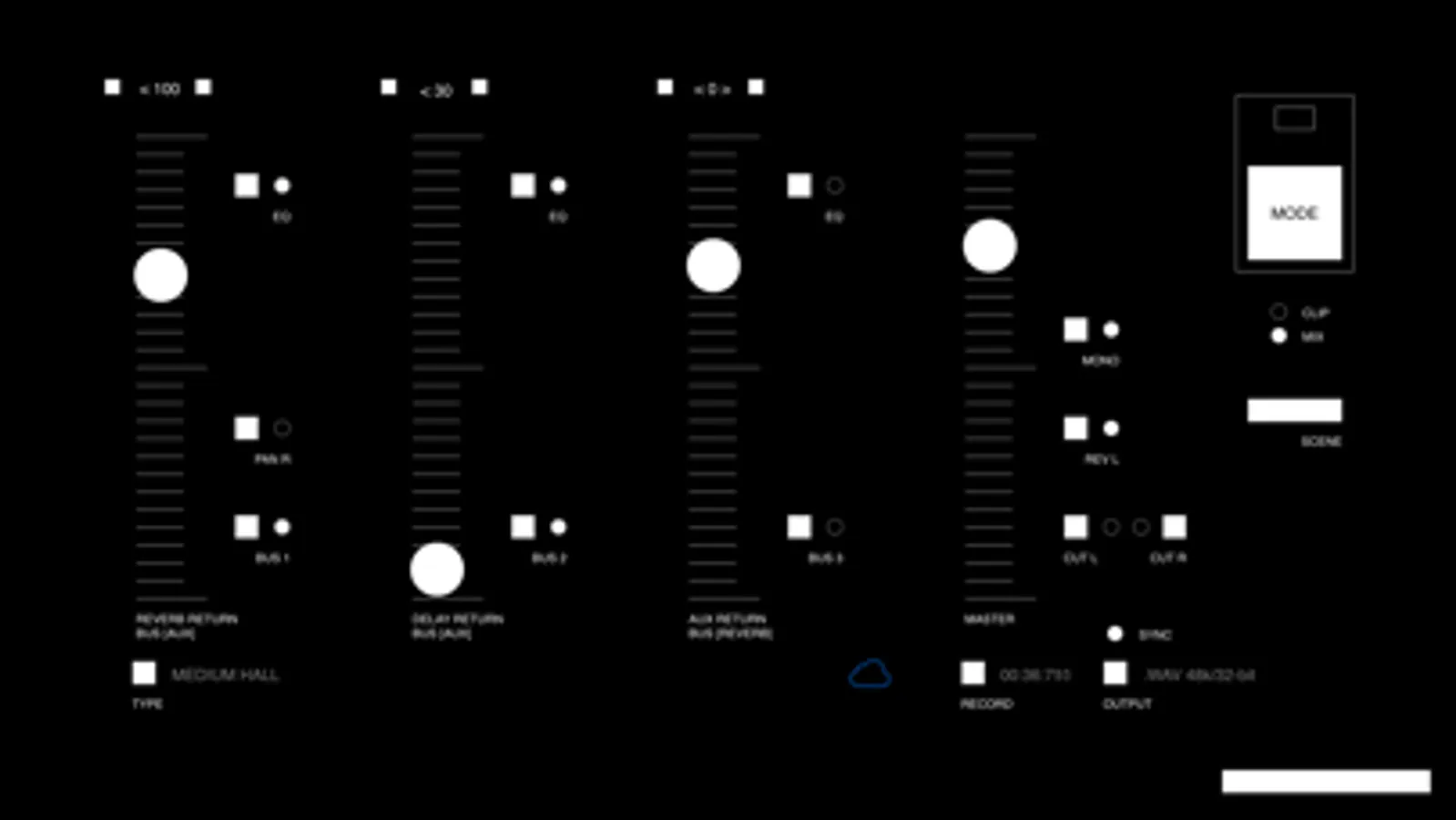 - 3 dedicated Busses; Reverb to Aux, Delay to Aux, Aux to Reverb