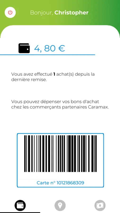 - Connectez-vous à votre carte de fidélité Caramax et affichez votre code barre lors du passage en caisse.
