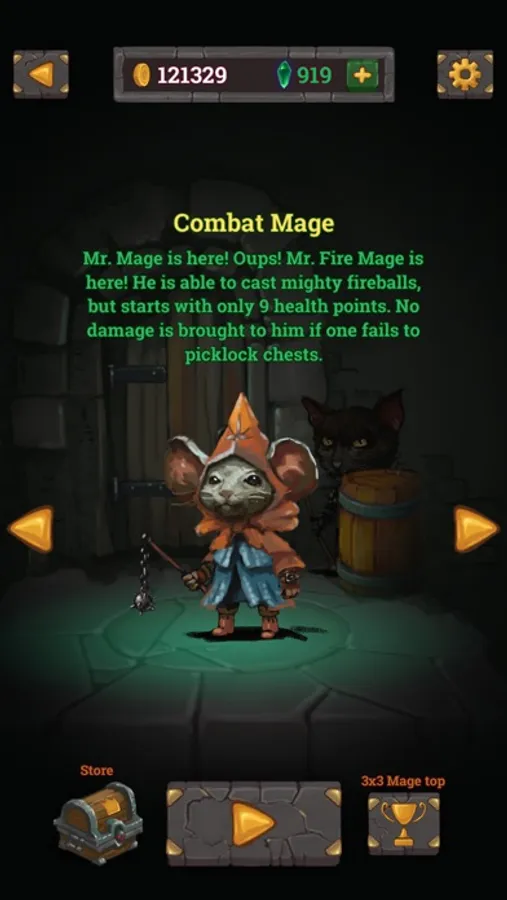 You've got 11 heroes with different tactics to reach as much loot as you can. They are Knight, Mage, Paladin, Thief, Ruiner, Dark Druid, Sir Lancelot, Berserker, Assassin, Plague Doctor and Archer.