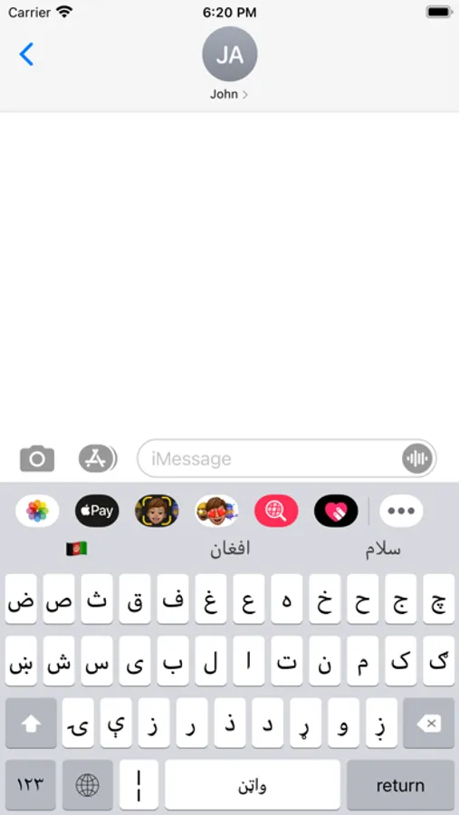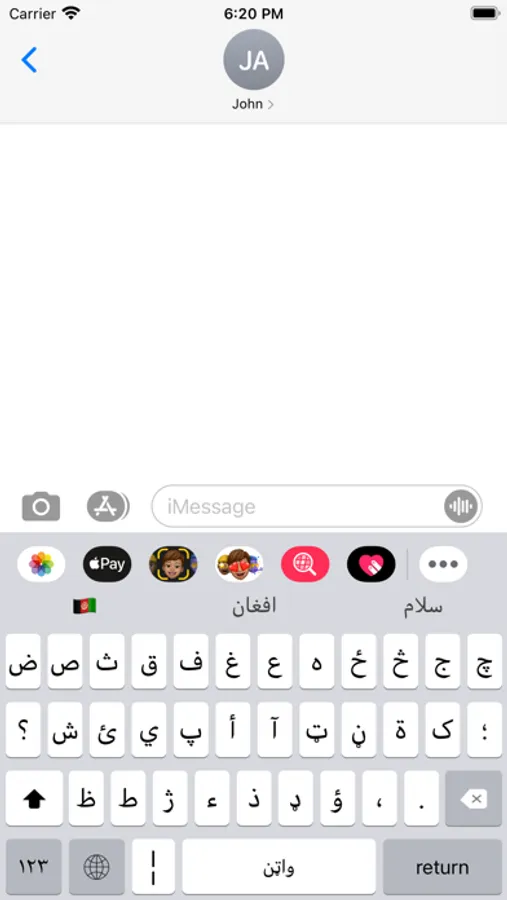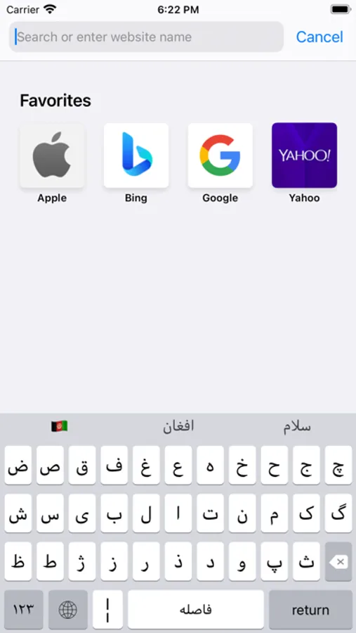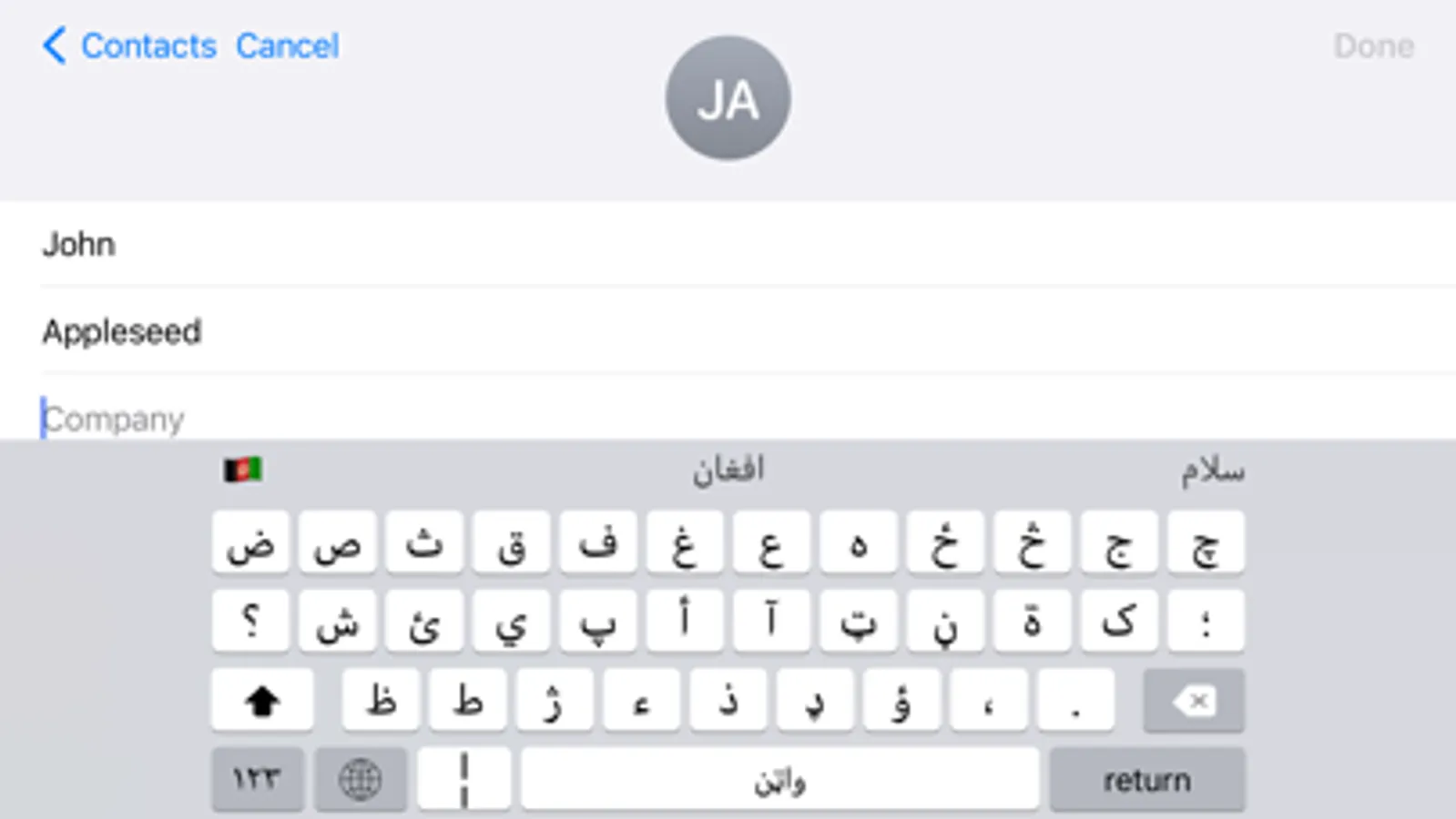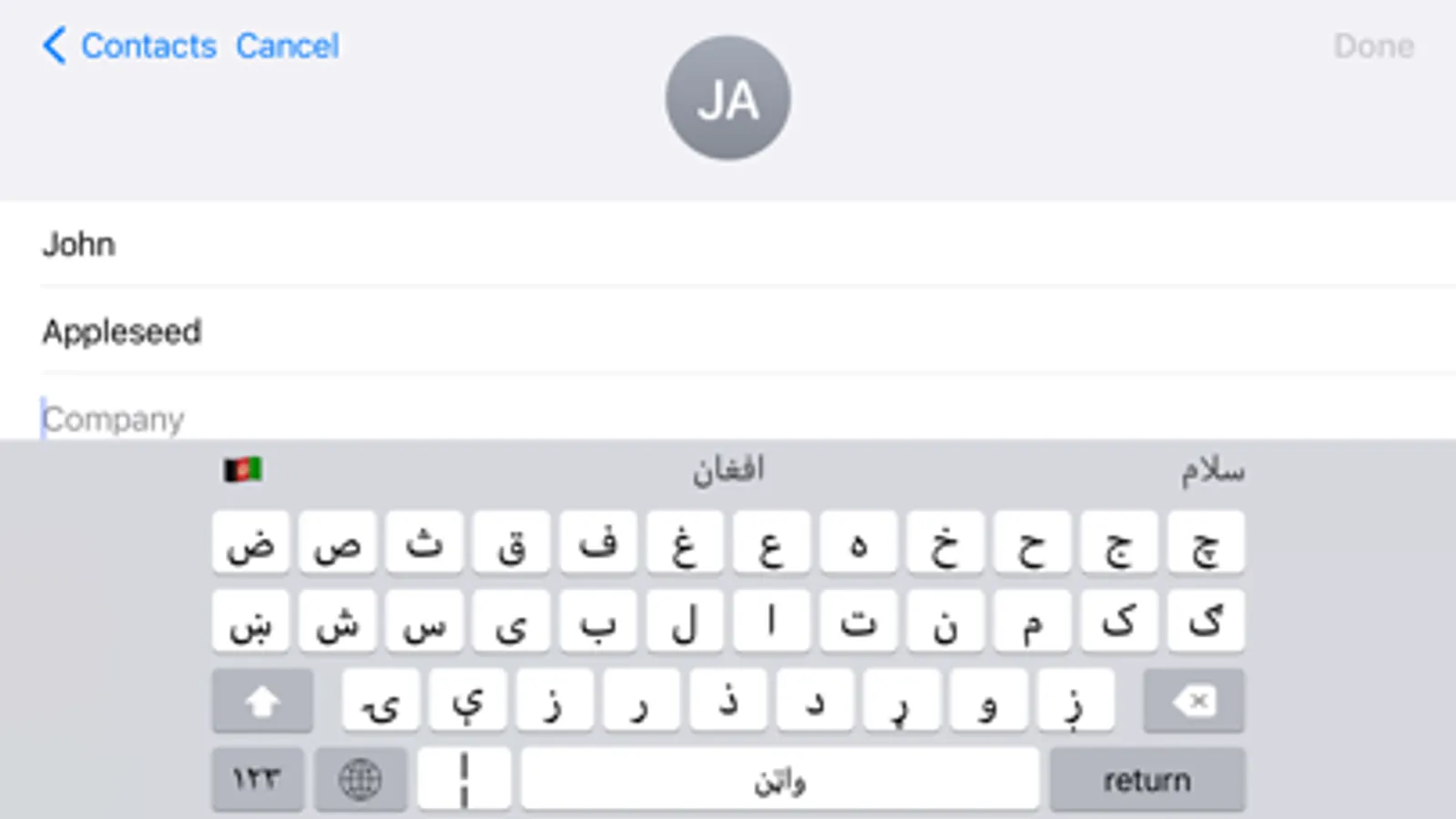 Afghan Keyboard is a complete solution for both Pashto and Dari (Farsi) Afghanistan national languages along with native numbers and symbols. This keyboard is built-in which enables users to type Pashto or Dari (Farsi) in any iOS application.