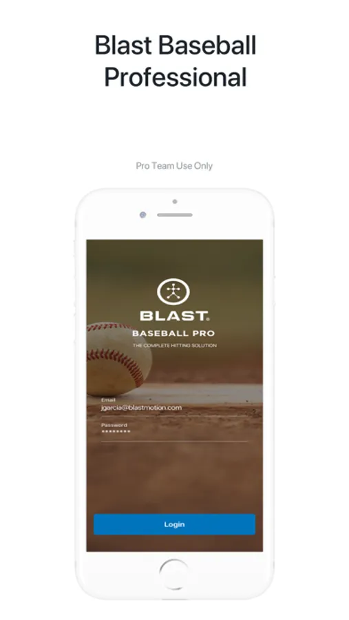 NOTE: The Blast Baseball Pro Team app requires a Blast Motion Organization ID to use the app. The Blast Baseball Swing Analyzer and bat attachment are required to collect data.