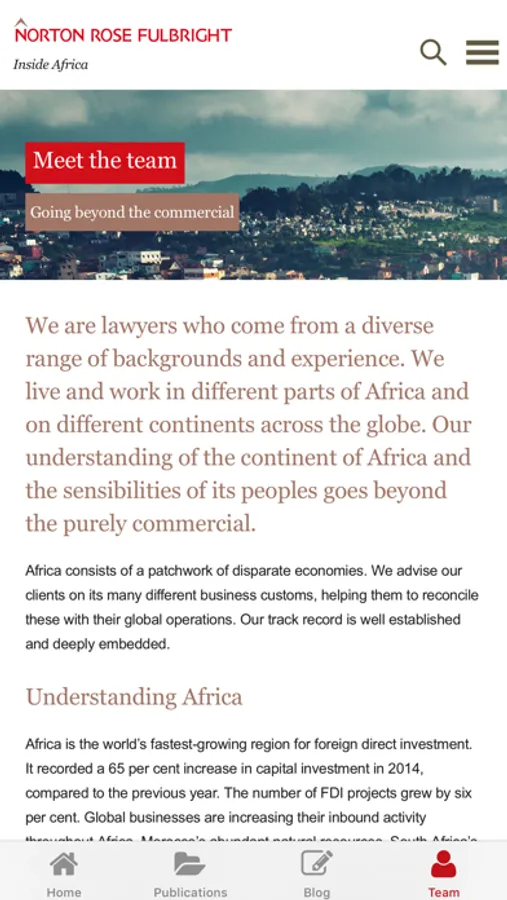 Norton Rose Fulbright is passionate about being part of Africa’s growth story. The objective of Inside Africa is to help drive the success of our clients’ business in Africa through our legal skills, sector experience and local knowledge.