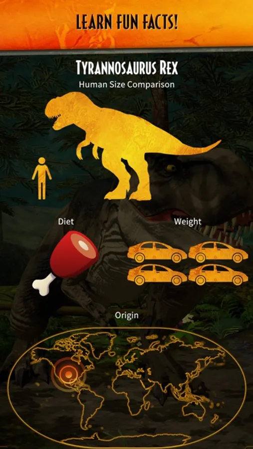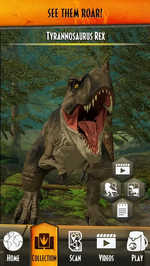 Time to head to the Lab! Scan the Tracking Code on your Mattel Jurassic World dinosaur toy to watch the AR Lab come to life around your toy. In the AR Lab, you can view your dinosaur in 360°, hear the dinosaur roar, and check out X-ray Mode and Thermal Mode for an even more in-depth look at your dinosaur!