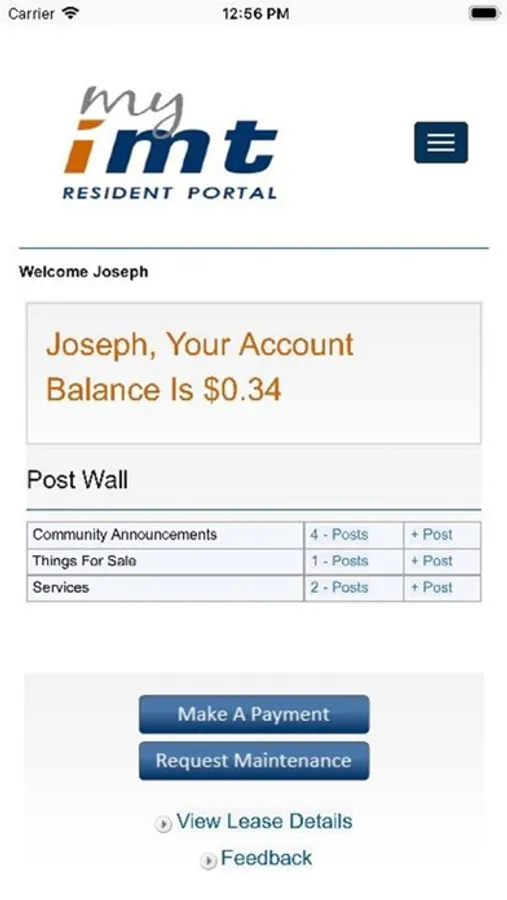 Pay Rent Online: Through the My IMT Resident Portal app, you can pay your rent from your smartphone anywhere at any time. Simply follow the easy step-by-step instructions to securely pay your rent online. Options allow for one-time or recurring payments with your credit card or through your checking account. It’s that easy!