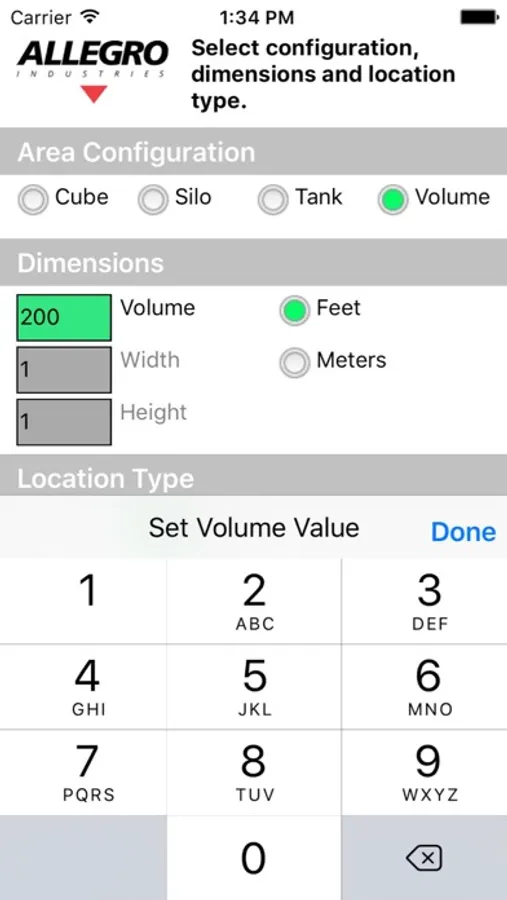 1. Simply choose the type of confined space you’ll be working in (cube, silo, tank or overall volume of the space)