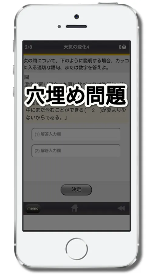 問題は分野ごと、または分野に関係なく出題する「ランダム」に分かれています。より実践的な力を試すにはこの「ランダム」が適しています。また、分野ごとの出題でもその分野に限った知識だけでなく他学年も含めた中学理科全般の知識を必要とする問題もあります。