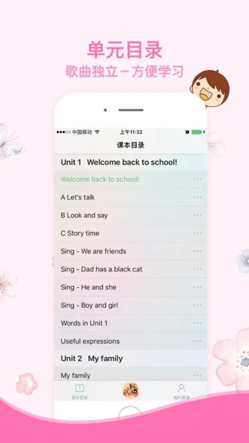 *涵盖全部内容,包括全部课程对话和常用句子、单词列表、复习章节、全部英文歌曲等。