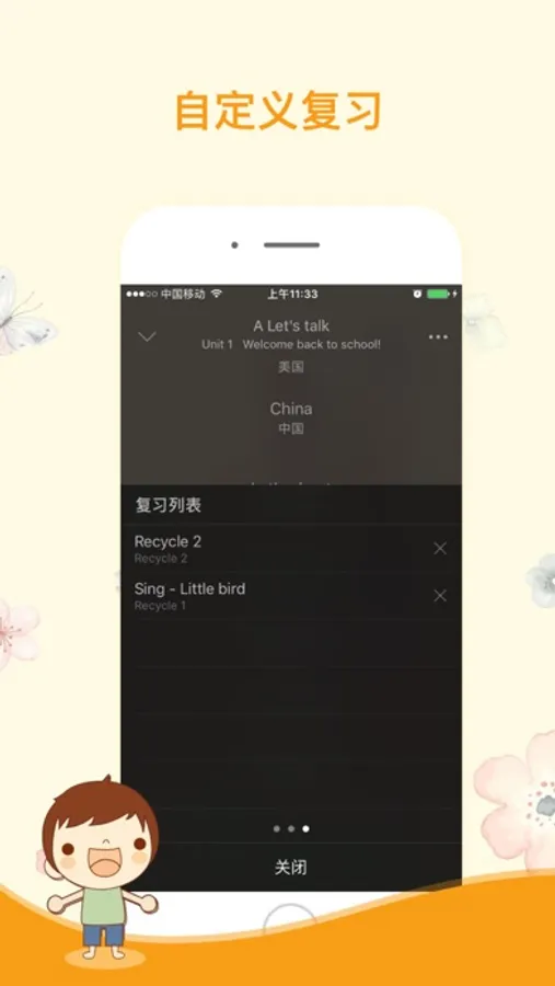 *界面简洁操作简单,自动播放,自定义学习章节。