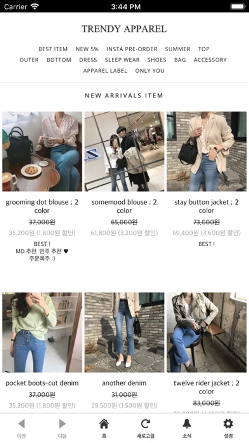 20대 여성 의류 쇼핑몰, 데일리룩, 티셔츠, 블라우스, 자켓, 원피스, 청바지, 스커트, 슈즈, 백, 악세서리