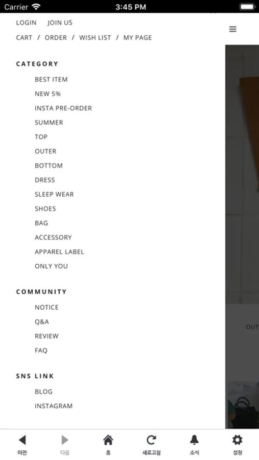 본 APP은 웹사이트 쇼핑몰과 100% 연동되어 있어