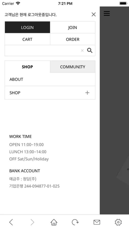 본 APP은 웹사이트 쇼핑몰과 100% 연동되어 있어