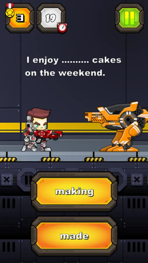 #This is a simple game just kill robot with basic english grammar.