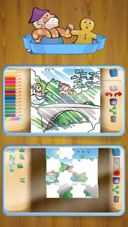 • Game 2 – Jigsaw puzzles of different scenes from the story with three difficulty levels of. Play with interesting jigsaw puzzles and discover the pictures.