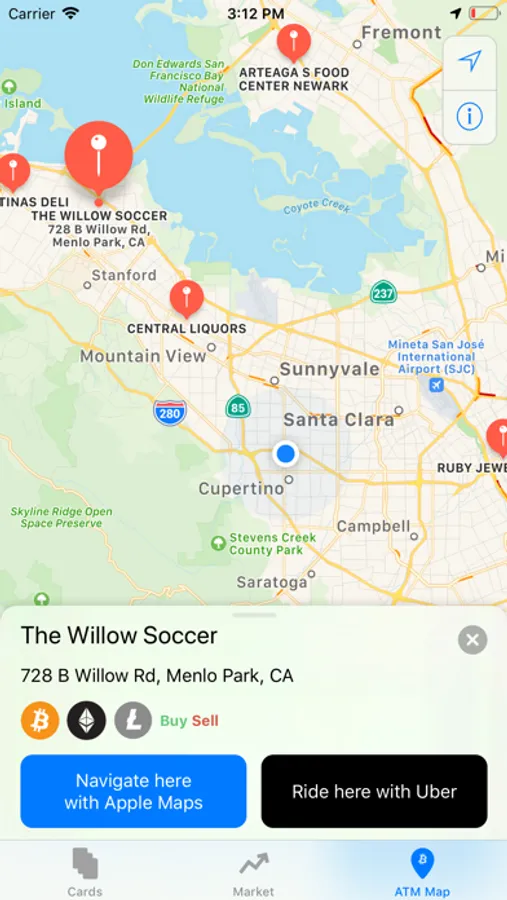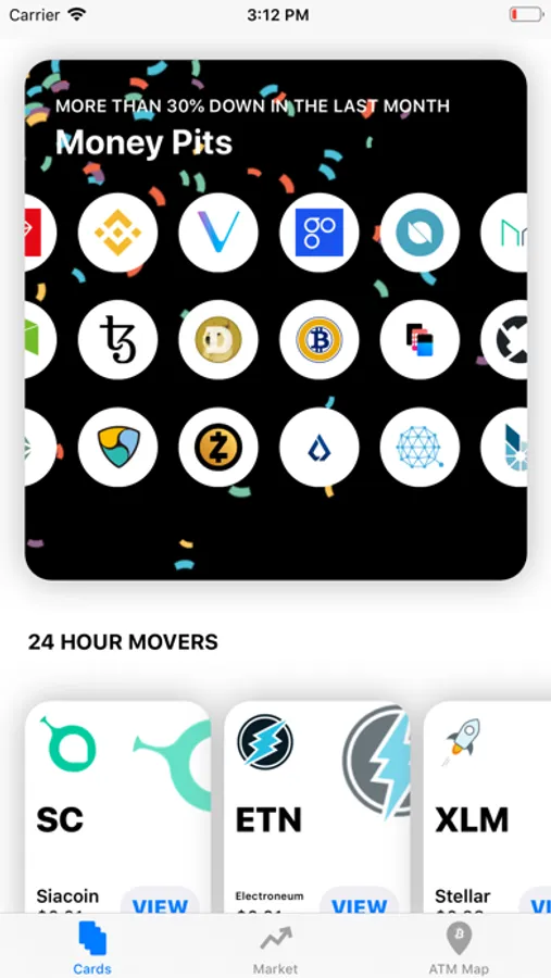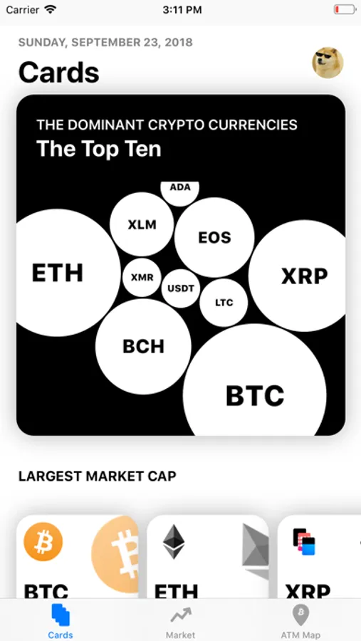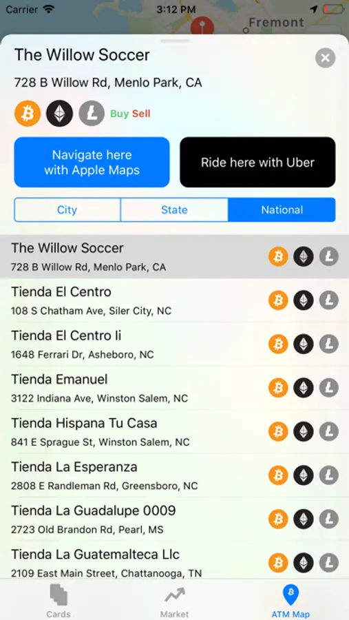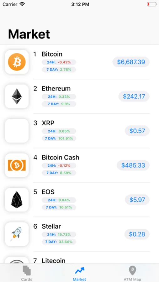 Crypto Cards provides users with crypto currency market information, as well as a map interface to view crypto currency ATM locations within the contiguous United States.