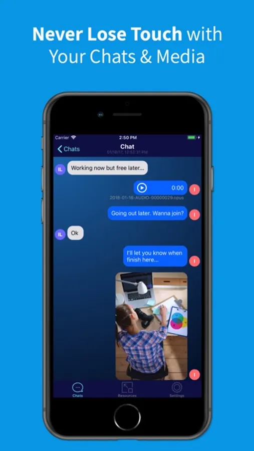 Important: The app doesn't add a lock to the original app, it is used to store your sensitive data and chats in a safe cloud. It is your responsibility to delete those chats from the original device.