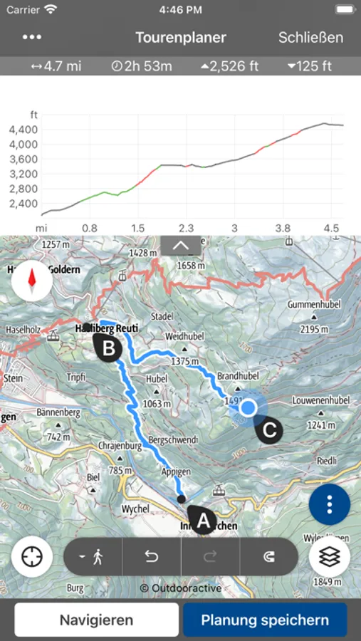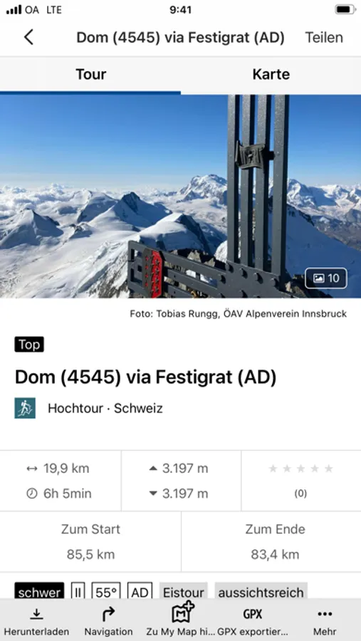 Neben der Outdooractive-Karte können weitere Kartengrundlagen, wie zum Beispiel die Swisstopo-Karte, genutzt werden. Karten und Touren können mit der App offline gespeichert werden, so dass Sie jederzeit und an jedem Ort auf Ihre Tourdetails zugreifen können. Dank der Synchronisation zwischen App und Web sind Ihre Daten auf allen Geräten stets auf dem aktuellsten Stand.
