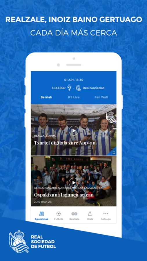 Ongi etorri! Aquí tienes la aplicación Realzale, un espacio digital que nace por y para toda la familia de la Real Sociedad. Siéntenos cada día más cerca gracias a la APP oficial del club txuri urdin. ¡Arranca un nuevo tiempo y queremos que nos acompañes!
