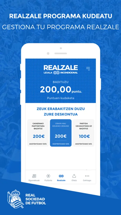 Laster ohartuko zara merezi izan duela. Realzale Appa funtsezko tresna izango da Reala bizitzen ari den digitalizazio prozesuan. Osagarri ezin hobea www.realsociedad.eus web gunerako. Odol txuri-urdina baldin baduzu, hau da zure aplikazioa. Realzaleen mundua zure eskura!