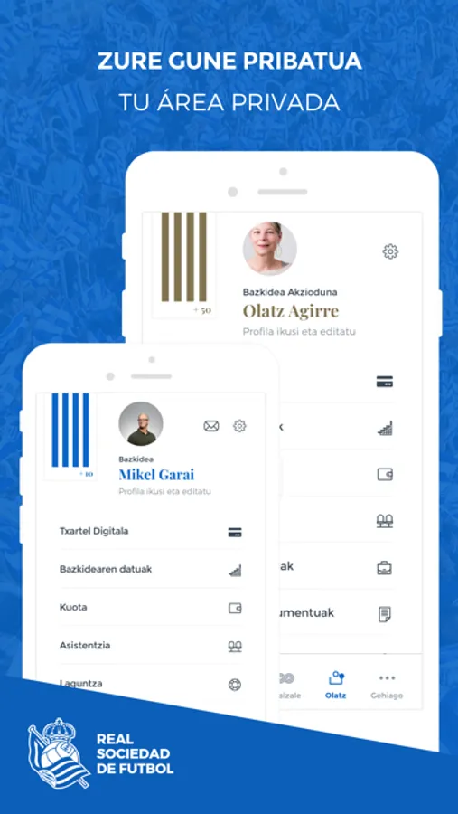 - Zure gune pribatuaren erabateko pertsonalizazioa, klubarekiko erlazioa erraztuko dizuna eta klubarekiko gestioak arindu.
